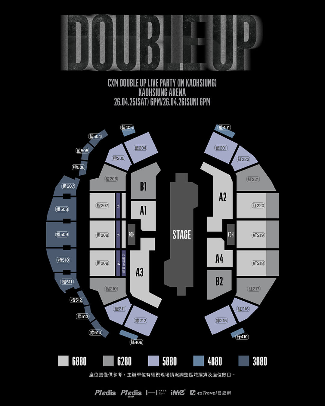將帶著首場巡演 《CxM [DOUBLE UP] LIVE PARTY》來到高雄巨蛋強勢襲台!