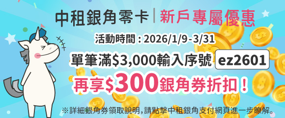 領取新戶專屬「銀角券」,再折$300